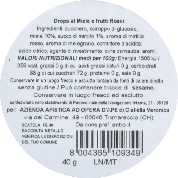 Caramelle Drops Miele e Frutti Rossi